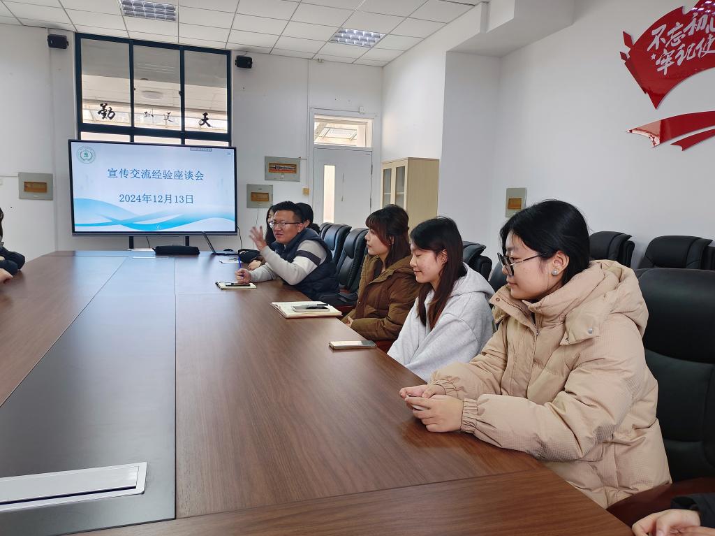 会议上,药学院融媒体中心主任杨京京首先介绍融媒体中心的工作内容,涵盖了新闻采编、照片拍摄、平台运营等多个方面,通过明确分工,每个成员才能清晰地了解自己的工作职责和在整个工作流程中的位置,从而更好地与其他部门协作,形成合力,共同完成工作任务。另外,融媒体中心实行轮班制,四个轮班主任均参加本次会议。随后,团委宣传部部长付偲讲述活动稿件写作与审阅、学子文海、团日活动安排等工作的管理与要求。她指出,过去的一年里,团委宣传部作为连接校团委与院团委的桥梁,发掘并传播优秀的文字作品,确保团日活动的高质量进行,为药学院的宣传工作不断贡献着力量。紧接着,经管学院融媒体中心负责老师也为参会成员介绍其部门工作内容,并强调把握时间节点对于新闻工作的重要性,以确保各项任务能够及时、有序地推进。会议最后,药学院团委书记赵小俊做出总结,他首先肯定了经验交流会模式的正确性,认为这种模式能够使双方对于宣传工作有更深入的了解,并为两方学院未来工作的继续开展提供宝贵参考。他强调,融媒体中心要总结以往的发展经验,面向师生、面向社会,不断守正创新,并充分利用学院的资源,结合学院特色,把日常工作专业化、制度化、规范化,为学院发展注入新的动力。至此,本次会议圆满结束。