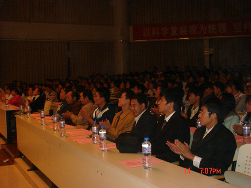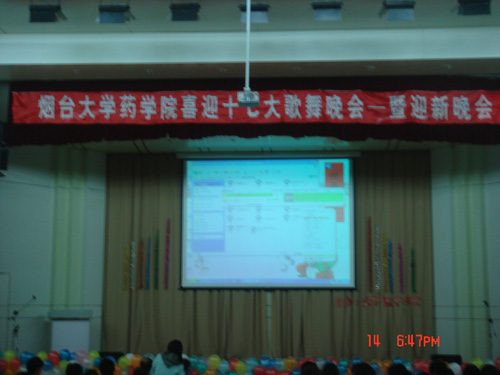 2007年10月14日晚6:00点烟台大学药学院喜迎十七大 迎新晚会在建筑系报告厅隆重举行。参加此次晚会的有唐书记、辅导员李江老师、张子良老师,各班班主任、07级新生及来自滨州医学院的朋友们。晚会在一段极富激情,动感十足的韵律操后正式拉开帷幕。
