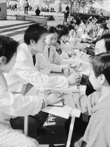 昨日,烟大药学院团委在文化广场举办“关注健康、科学用药”活动,