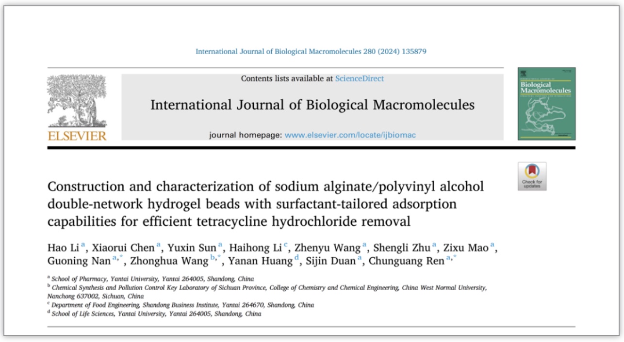 近日,药学院共有9名学生发表多篇高水平论文。其中,2021级本科生科研团队在任春光老师指导下取得重要研究突破,李浩、张素素等7位同学分别以第一作者身份在国际权威期刊《国际生物大分子杂志》(International Journal of Biological Macromolecules)(中科院TOP,IF 8.5)发表系列研究论文,展现了出色的科研创新能力。